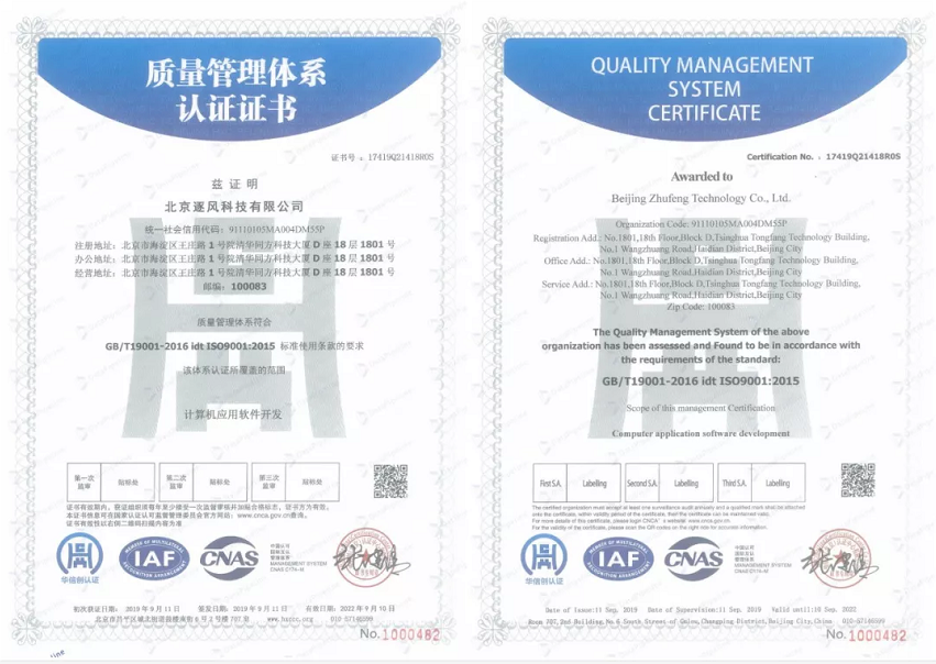 通过建立较为完善的质量管理体系,DataPipeline于近日正式通过权威认证机构的严格审核,获得带有IAF和CNAS标识的ISO9001质量管理体系认证。