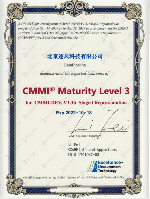 CMMI3级认证是DataPipeline提升产品和服务质量道路上的又一里程碑,立足当下,依旧任重而道远。未来,DataPipeline将严格恪守CMMI3级认证的相关要求,完善研发管控体系,为客户提供更为优质的产品和服务。