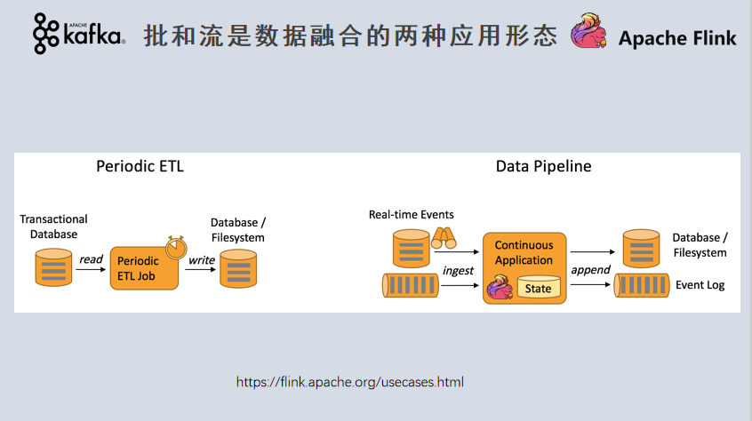 下图来自Flink官网。传统的数据融合通常基于批模式。在批的模式下,我们会通过一些周期性运行的ETL JOB,将数据从关系型数据库、文件存储向下游的目标数据库进行同步,中间可能有各种类型的转换。