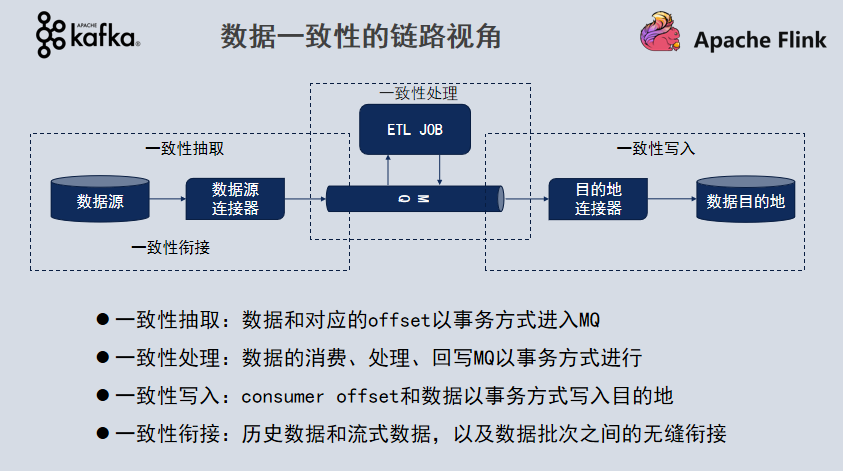 在MQ模式下,一致性写入,即consumer offset 跟实际的数据写入目的时,必须是同时持久化的,要么全都成功,要么全部失败。