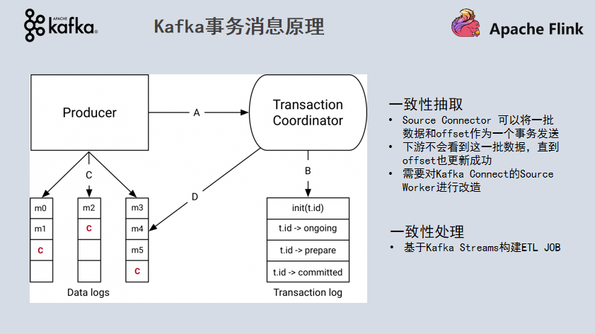 如果大家用过Flink,Flink提供了一个端到端一致性处理的能力,它是内部通过checkpoint机制,并结合Sink端的二阶段提交协议,实现从数据读取处理到写入的一个端到端事务一致性。其它框架,例如Spark Streaming和Kafka Streams也有各自的机制来实现一致性处理。
