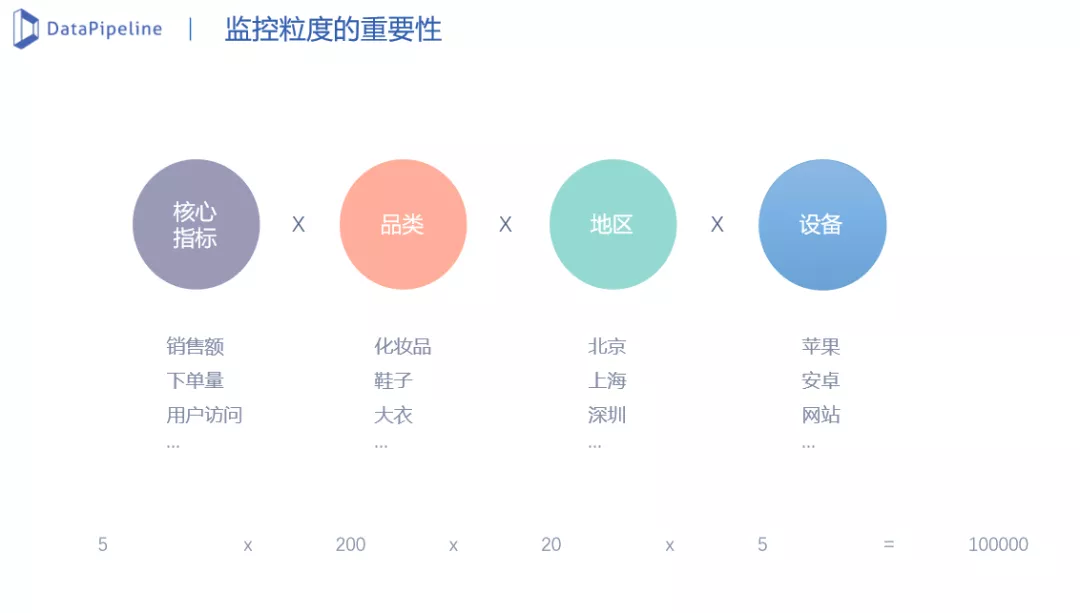 例如某零售企业,其酸奶的销售额在某地区较之前有所下降,原因是酸奶的库存出现了周转问题。由于一直售卖过期酸奶,导致接到大量用户举报。针对该情况,若只监控总销售额很难发现问题,这时需要监控品类和地区两个维度更细粒度的指标。而监控多个维度的指标,指标监控的数量会成倍增长,显然是人工无法胜任的。