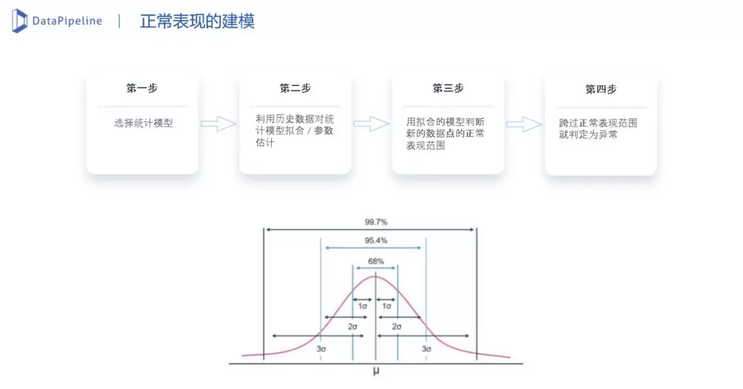 这些算法一般遵循这样一个步骤:先对历史数据进行建模,学习数据正常表现的规律。对新来的数据点,根据数据点偏离正常表现模型的程度来判定是否为异常。