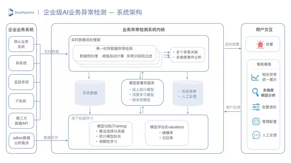 若构建一套企业级业务监控和异常检测系统应该具备哪些组成部分?下面为DataPipeline的一些思路。