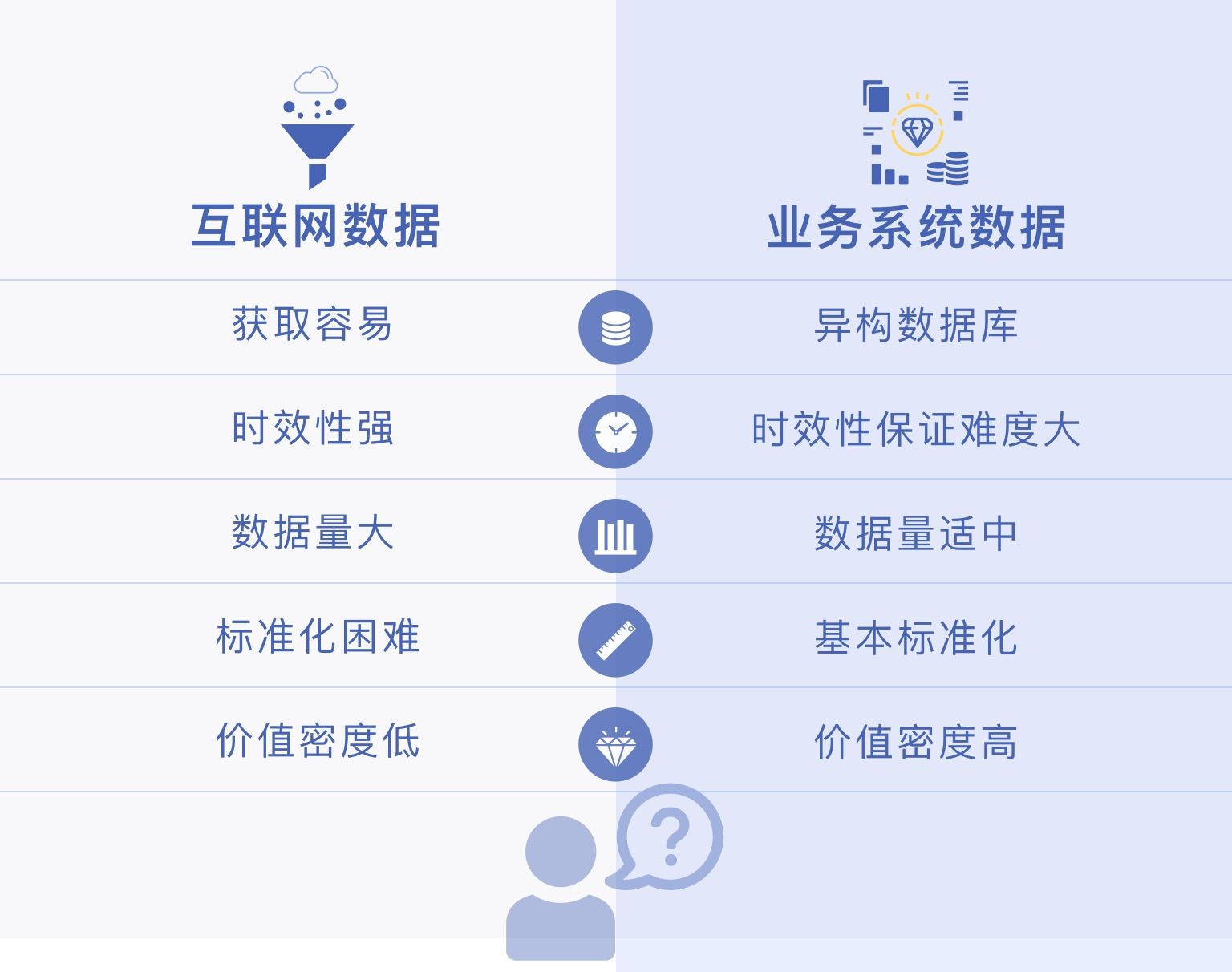 当然并不是说外部数据没价值或者说时效性不重要,而是说要全面考虑企业域、产业域、生态域可利用的数据,基于实际价值驱动,由高到低提升数据时效性,而不是按照数据本身的时效性来加以利用,舍本逐末,忘记了数据时效性提升的根本目的是为了业务价值(说人话:业务系统里的数据实时获取是比互联网数据获取困难,面临的问题多,可是价值也高呀,你得挑值钱的活干,不能挑好干的活干呀)。