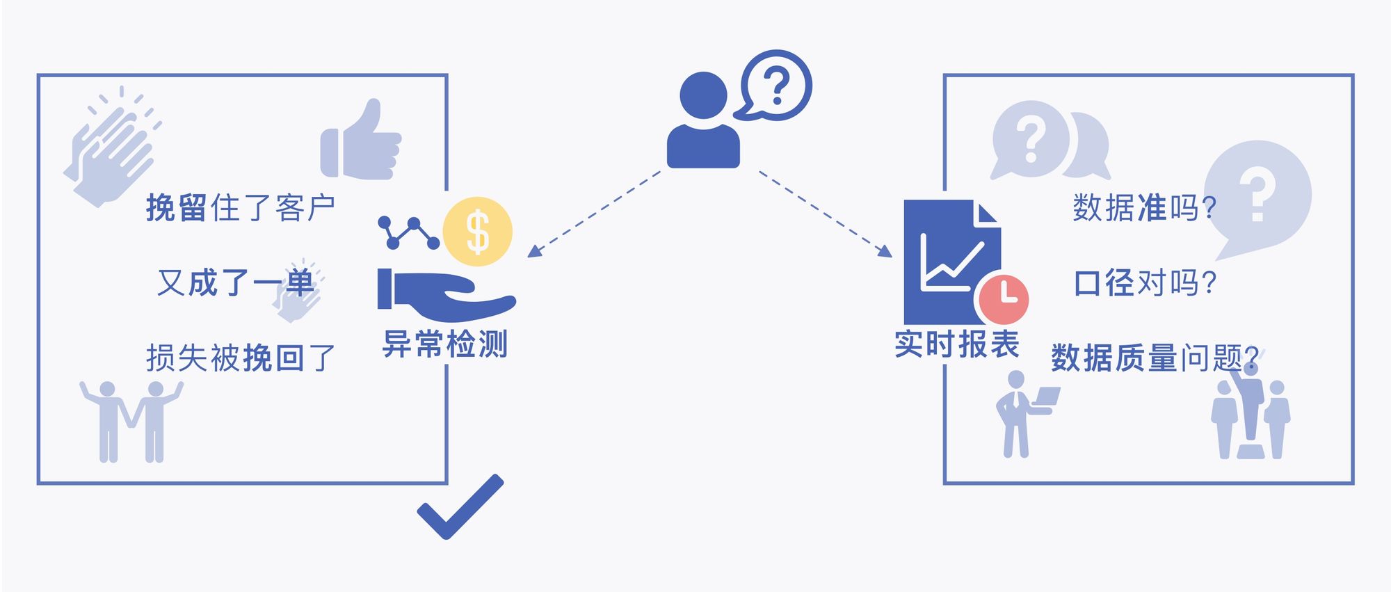 当然,价值在不同层次和不同维度上的理解和定位是不一样的,但在实时数据价值释放过程中,大家需要注意,虽然管理层需要实时了解经营管理信息,但这意味着各业务部门需要改变流程甚至结算的体系。这所面临的困难远不止于技术层面。尽管可以得到自上而下的强力推动,但具体工作却始于一线。在企业层面没有对实时数据的应用达成基本共识之前,实时数据在经营管理类场景中的应用尤为慎重,不要让自己陷入到对于数据口径、数据质量、数据准确性的权责陷阱中,实时数据更好的切入点是直接与收入相关的触客业务,无论是基于账户变化的事件营销抑或是协助客户经理的实时画像,这也很科学,管理层要的是运筹帷幄,失之毫厘谬以千里,一线要的是炮弹,销售线索本来就是用来验证的(说人话:你会发现客户和基层营销人员对帮助他们的工具的容忍度要远远高于你的领导)。