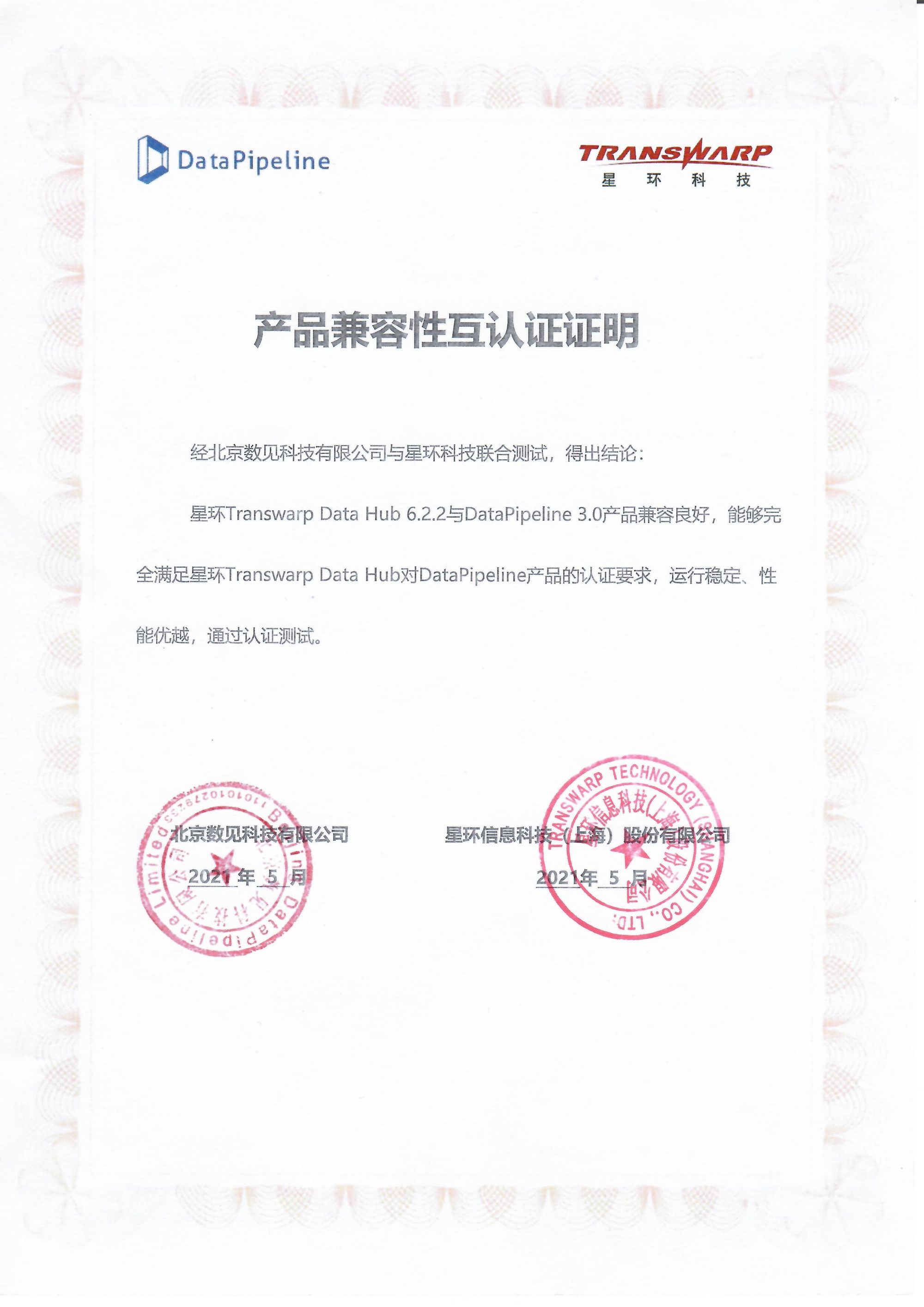 近日,经DataPipeline与星环科技联合测试,DataPipeline 企业级实时数据融合平台3.0与星环大数据平台Transwarp Data Hub 6.2.2产品兼容良好,运行稳定、性能优越,通过互认证测试。此次产品兼容互认证为双方在数据管理领域更广泛的合作打下了良好基础,也表明DataPipeline在生态体系建设中又迈出了坚实一步。