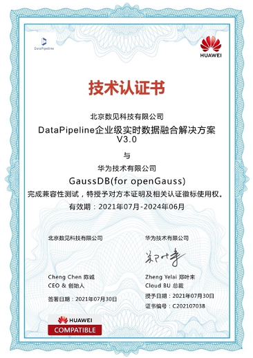 以上表明,DataPipeline与华为云在此前鲲鹏云服务技术认证的基础上,生态合作能力进一步提升,整体解决方案具备高阶服务实力,双方具备深度合作的广阔前景。另外,这也体现了DataPipeline“技术驱动”、“自主创新”与华为openGauss “共建、共享、共治”生态理念的契合。