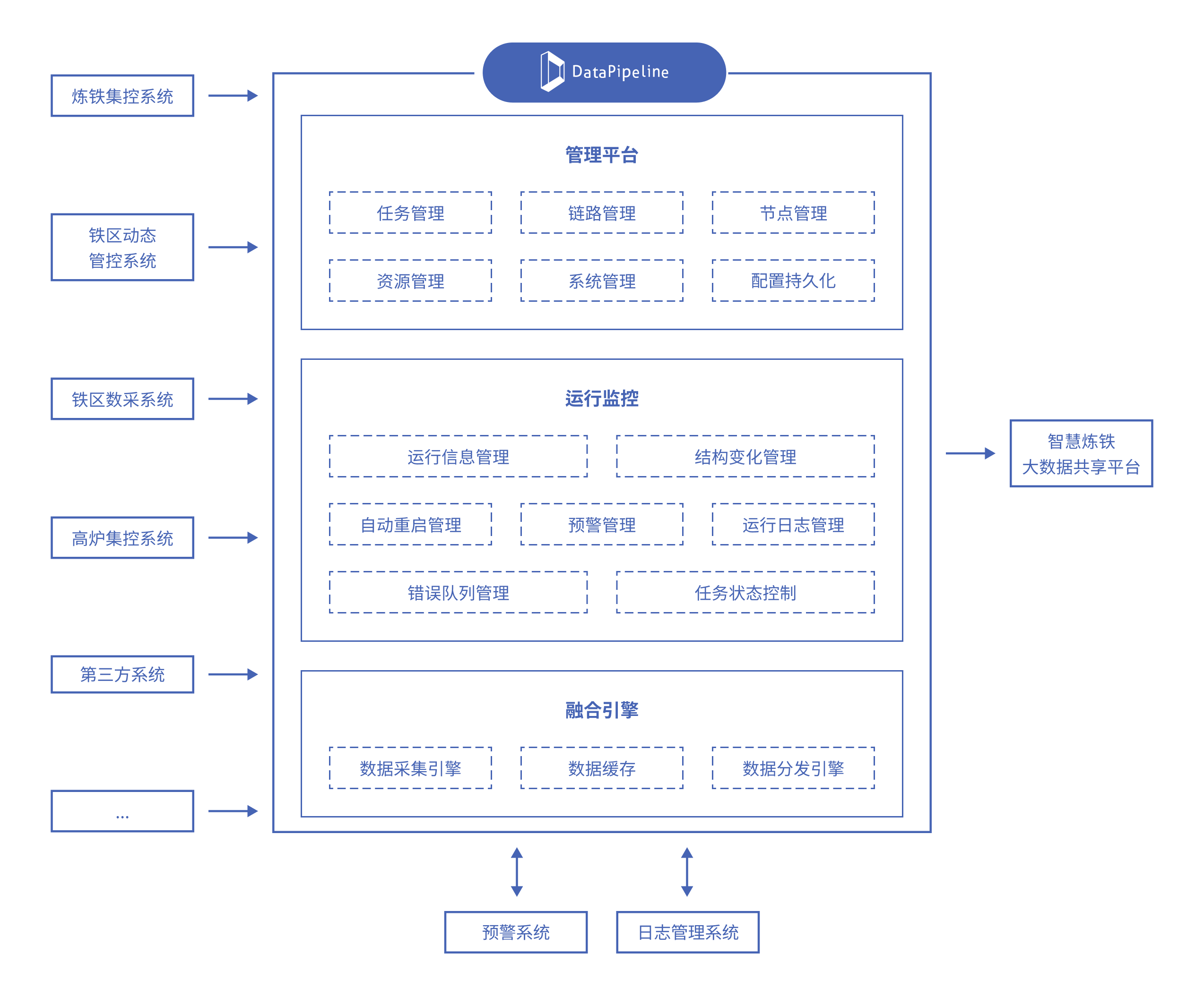 为了提升企业跨产线、跨系统的数据管理和应用能力,该企业引入DataPipeline构建实时数据融合平台。该平台贯穿了从上层管理决策到底层工厂的整个生产链,实时采集包括生产数据、工艺数据、设备数据、成本数据、订单指令、第三方数据在内的关键信息,同时将各类异构数据有效整合、清洗,加载到智慧炼铁大数据共享平台。这不仅提升了数据处理的灵活性和效率,还为后续的数据挖掘和治理提供了坚实的基础,确保了数据流的高效管理和应用,从而支持了客户在以数据驱动的业务优化和决策支持方面的需求。